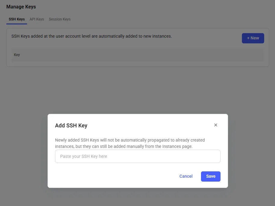 • To add keys to existing instances, use the instance-specific SSH interface